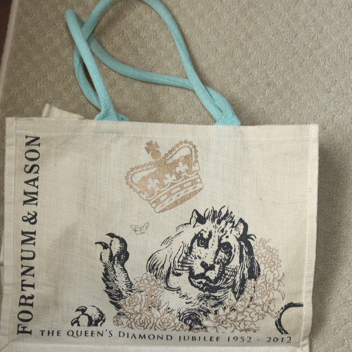 IMG_6478 Published November 9, 2013 at 1168 × 1168 Fortnum & Mason Jute bag commemorating The Queen’s Diamond Jubilee